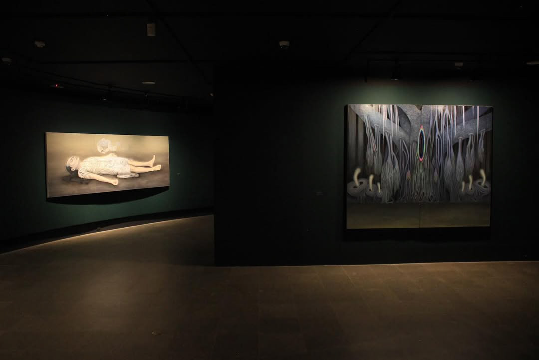 Dante Horoiwa’s delicately controlled and intimate pencil drawings share an introspective energy with Yusk Imai’s surreal painted abstractions and landscape. With vigorous mark-making, Jun Inoue’s live painting and works on canvas and Hiroyasu Tsuri/TWOONE’s new style of lightbox paintings maintain the energy of the artists’ backgrounds in street art within a fine art practice.